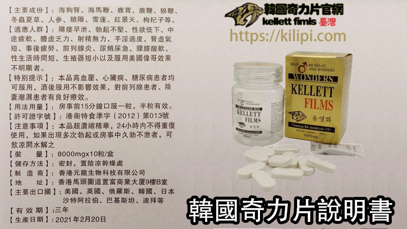 如果大家有想通過服用韓國奇力片幫助到自己治療改善性功能,可以到台灣唯一指定官網韓國奇力片官網kilipi.com進行購買,這樣可以保證我們所購買到正品奇力片,並且在服用後也能夠很有效。